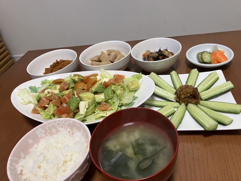ご飯/味噌汁/ひじき/れんこんの煮物/アボカドサラダ/